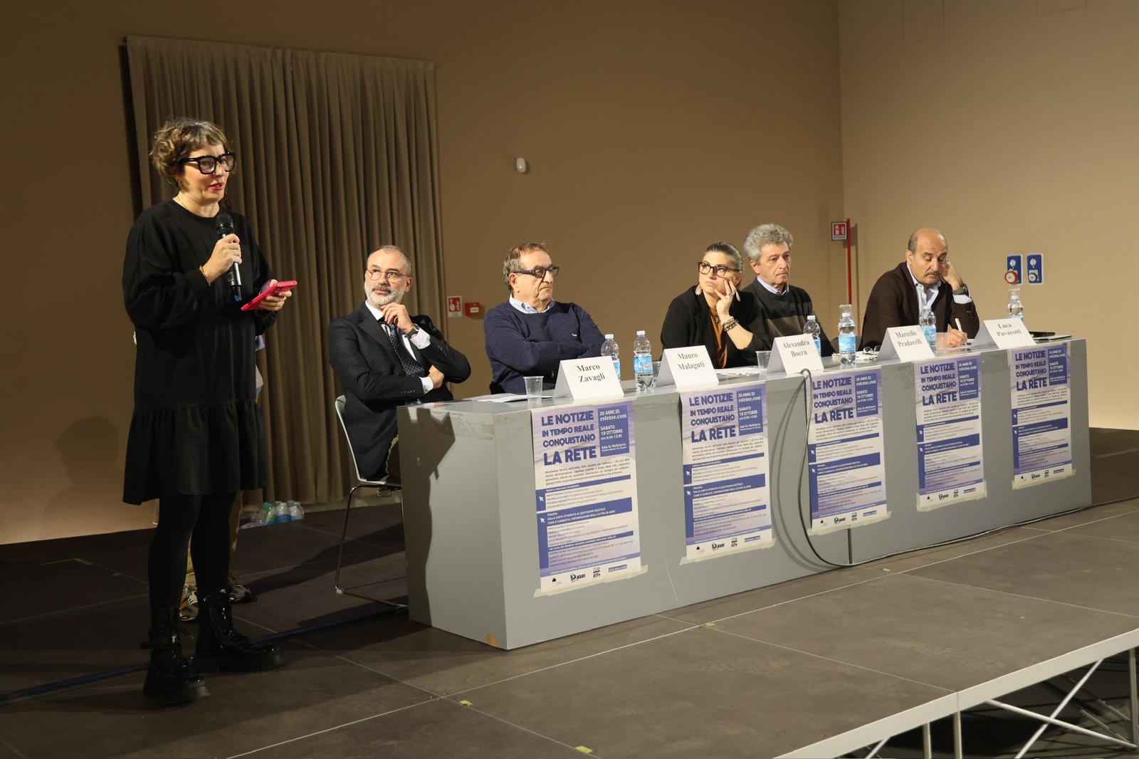 Ai saluti istituzionali hanno fatto seguito un commosso intervento di Lino Aldrovandi e il dibattito “Dalla carta stampata ai quotidiani digitali. Come è cambiata l’informazione negli ultimi 20 anni” moderato dalla giornalista Alexandra Boeru e a cui hanno partecipato, oltre a Marco Zavagli, i giornalisti Marcello Pradarelli, Mauro Malaguti e Luca Pavarotti. Un’occasione per il direttore di Estense.com per raccontare come la felice intuizione di produrre informazione sulla rete sia nata al tavolino di un bar, tre amici – tra cui lo stesso Zavagli – che hanno dato il via a un’idea che ha portato alla gestazione e realizzazione del primo quotidiano ferrarese esclusivamente online e ai suoi primi vent’anni di attività.